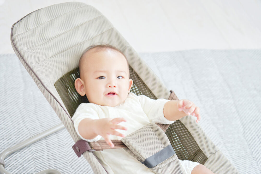 - 床に寝かせると踏まれる危険がある場合は、高さが出るバウンサーは「避難場所」として必須です。