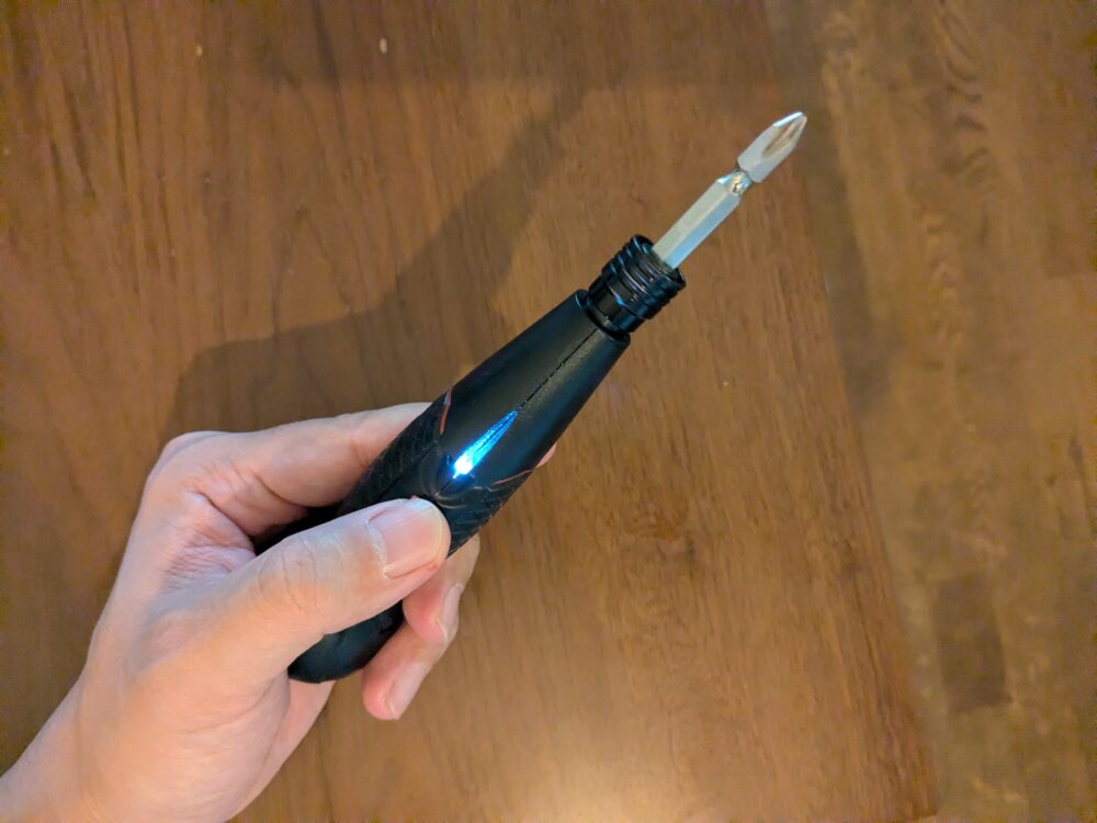 • 驚きの軽さと操作性: 軽量設計かつ滑り止めがついているので、女性でも疲れず扱えます。LEDライト付きで、家具の隙間や暗い足元のネジも見逃しません。
