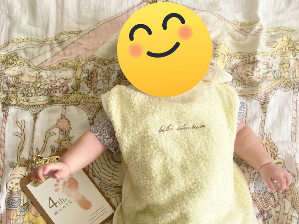 新生児の頃は「おくるみ」も使っていたのですが、現在はスリーパーを着せています😊